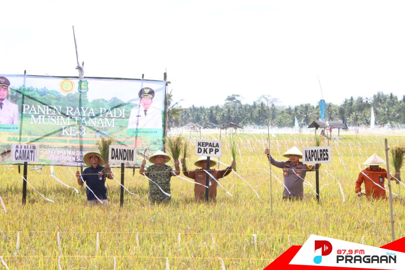 PRAGAANSTATION.COM, SUMENEP – Kapolres Sumenep AKBP Rivanda, S.I.K. menghadiri kegiatan Panen Raya Padi Musim Tanam Ke-3 dalam rangka mendukung program swasembada pangan nasional, Selasa (28/10/2025), bertempat di lahan sawah Gabungan Kelompok Tani (Gapoktan) Desa Bunpenang, Kecamatan Dungkek, Kabupaten Sumenep.